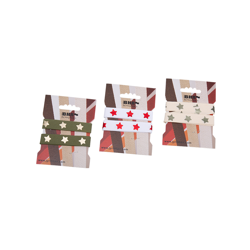 Banda de bumbac de ștampilare din aur este de obicei confecționată din material de bumbac și acoperire cu folie de aur. Folosește tehnologia de embosare a foliei de aur pentru a face ca suprafața benzii de bumbac să prezinte un model de aur strălucitor, care este extrem de decorativ și atrăgător vizual. Banda de bumbac de ștampilare din aur este utilizată pe scară largă în îmbrăcăminte de modă, accesorii, ambalaje cadou și decorațiuni pentru locuințe. Atingerea sa moale și aspectul orbitor îl fac un material indispensabil în design de înaltă calitate.